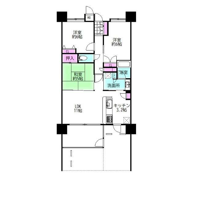 | 間取り(内訳) | 3LDK(LDK11帖 和室5帖 洋室6帖 洋室6帖) | ||